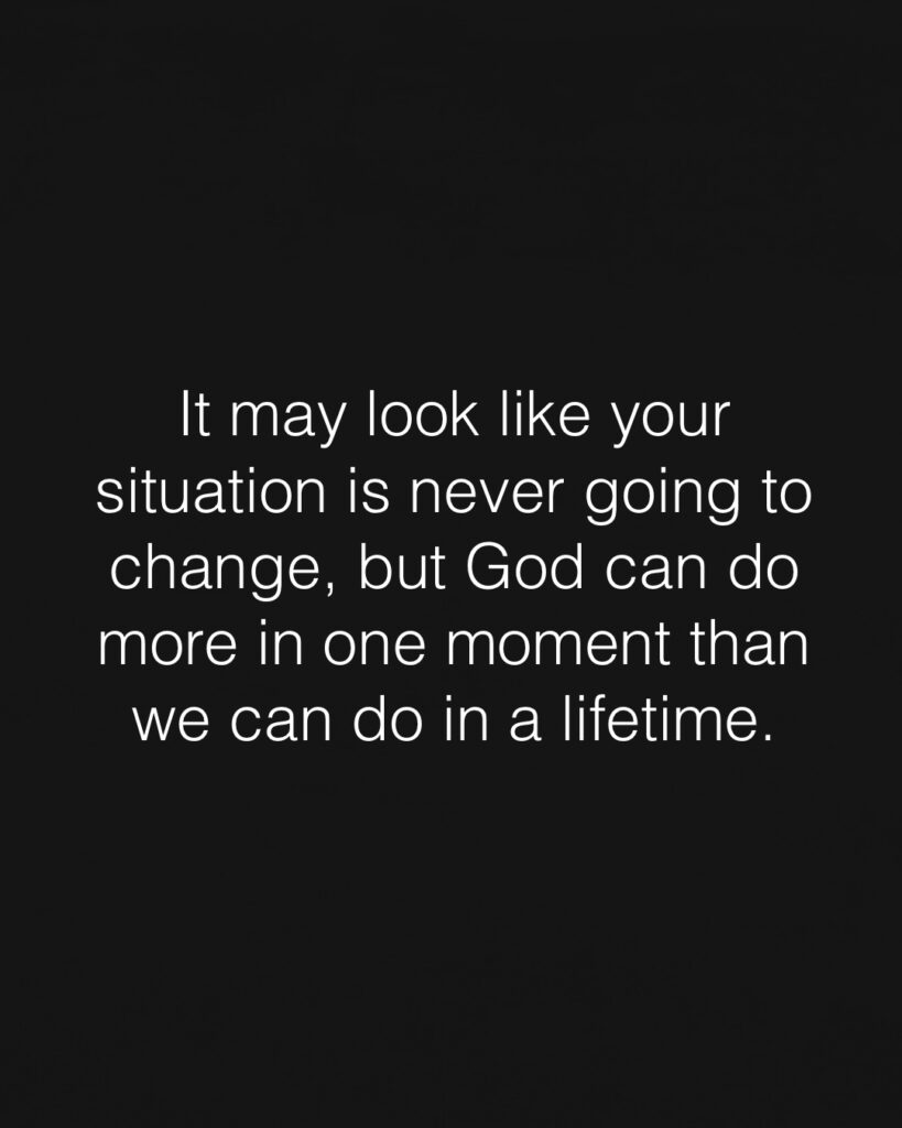 There are seasons when it feels like nothing is moving, like your prayers have gone unanswered and your situation is stuck. But God doesn’t need months or years to bring change; He can do it in a single moment. One touch of His favor, one divine connection, one unexpected opportunity can shift everything. The same God who parted the Red Sea, who turned water into wine, and who raised Lazarus from the dead still moves suddenly. You may not see it yet, but God is working behind the scenes, arranging everything in perfect order. When the time is right, He can do in an instant what you’ve been waiting for your whole life.